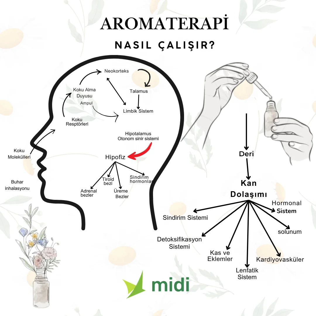 Kullanım: Sabah saatlerinde veya odaklanmakta zorlandığınızda difüzöre 2–3 damla damlatın.